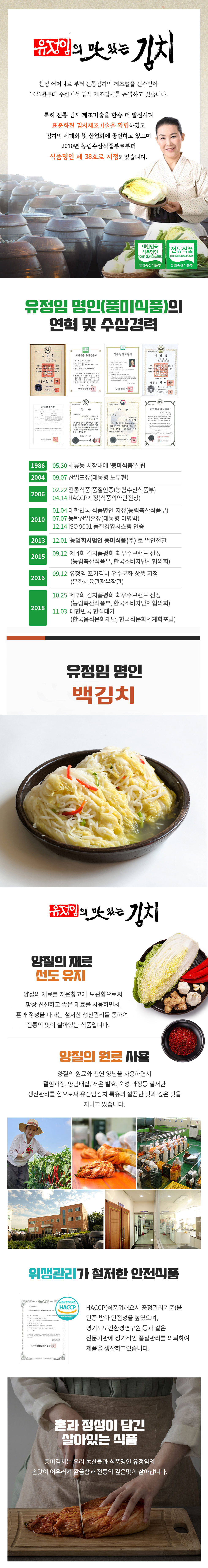 ◌ 대한민국 식품명인(제 38호, 포기김치분야)을 지정받아