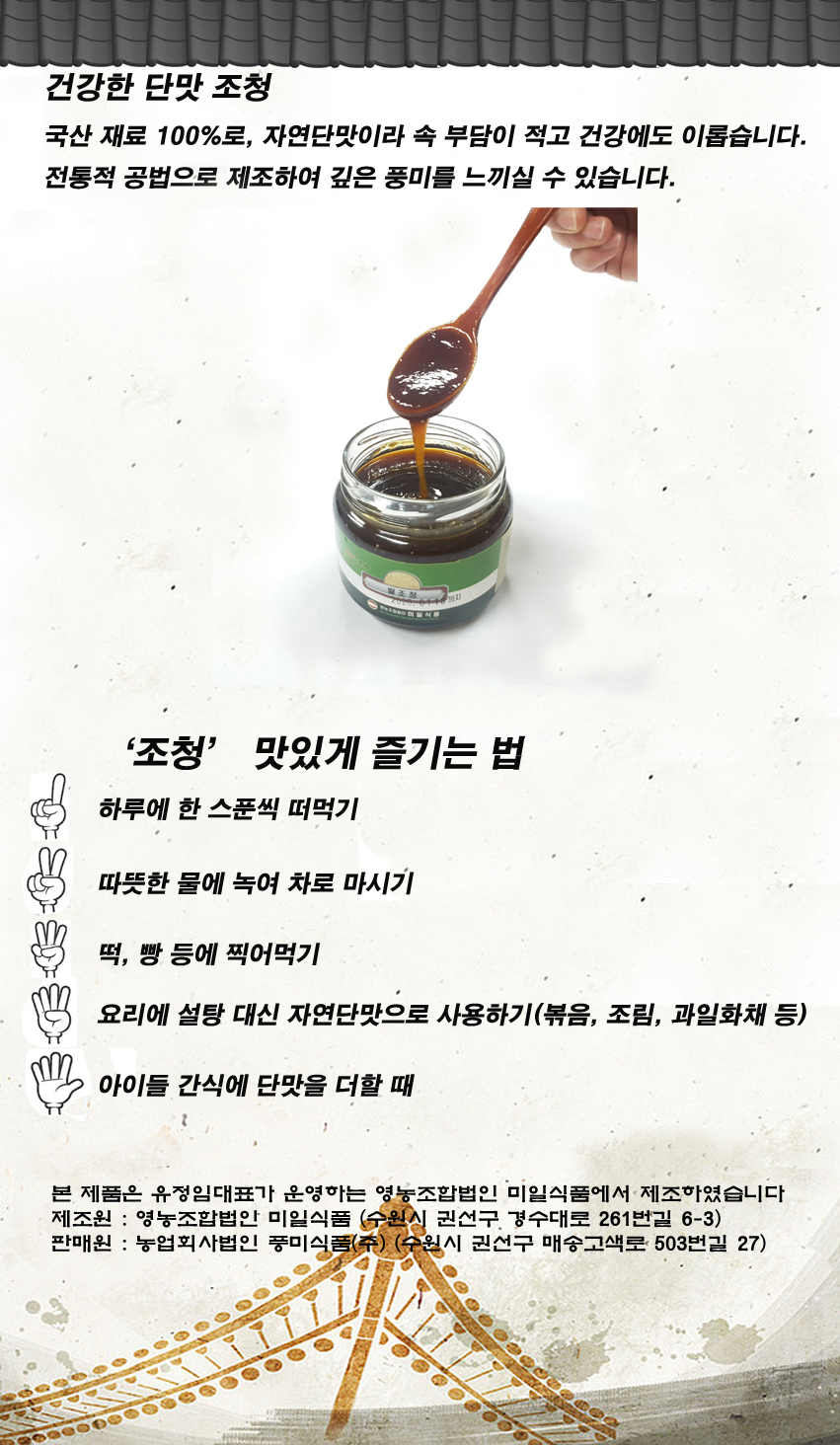 상호명 : 농업회사법인 풍미식품㈜ │ 대표자 : 유정임 │ 대표전화 : 031-296-8168~9
