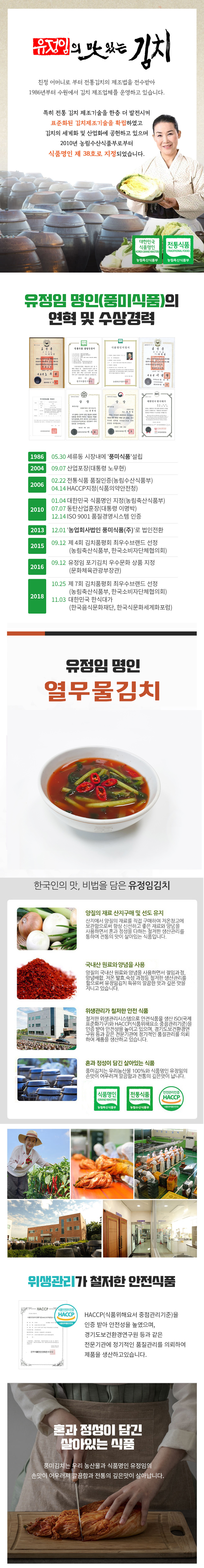 ◌ 대한민국 식품명인(제 38호, 포기김치분야)을 지정받아
